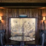 - Timber Wardrobe by Otto du Plessis, with etched brass doors featuring Moremi Delta flora by artist Trevor Potter.