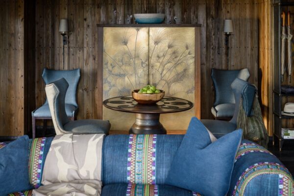 The headboard fabrics in the Papyrus Suite beautifully embody the waters of the Okavango Delta.