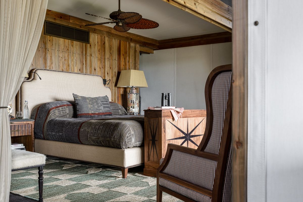 - African Jacquard Bedspread, custom-made to complement the suite’s design.