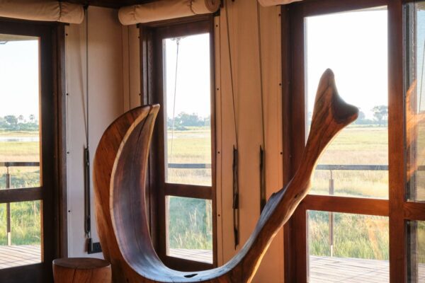 - Ardmore Ceramic Lamps, each depicting Moremi wildlife in vibrant, hand-painted detail, exclusive to Xigera.