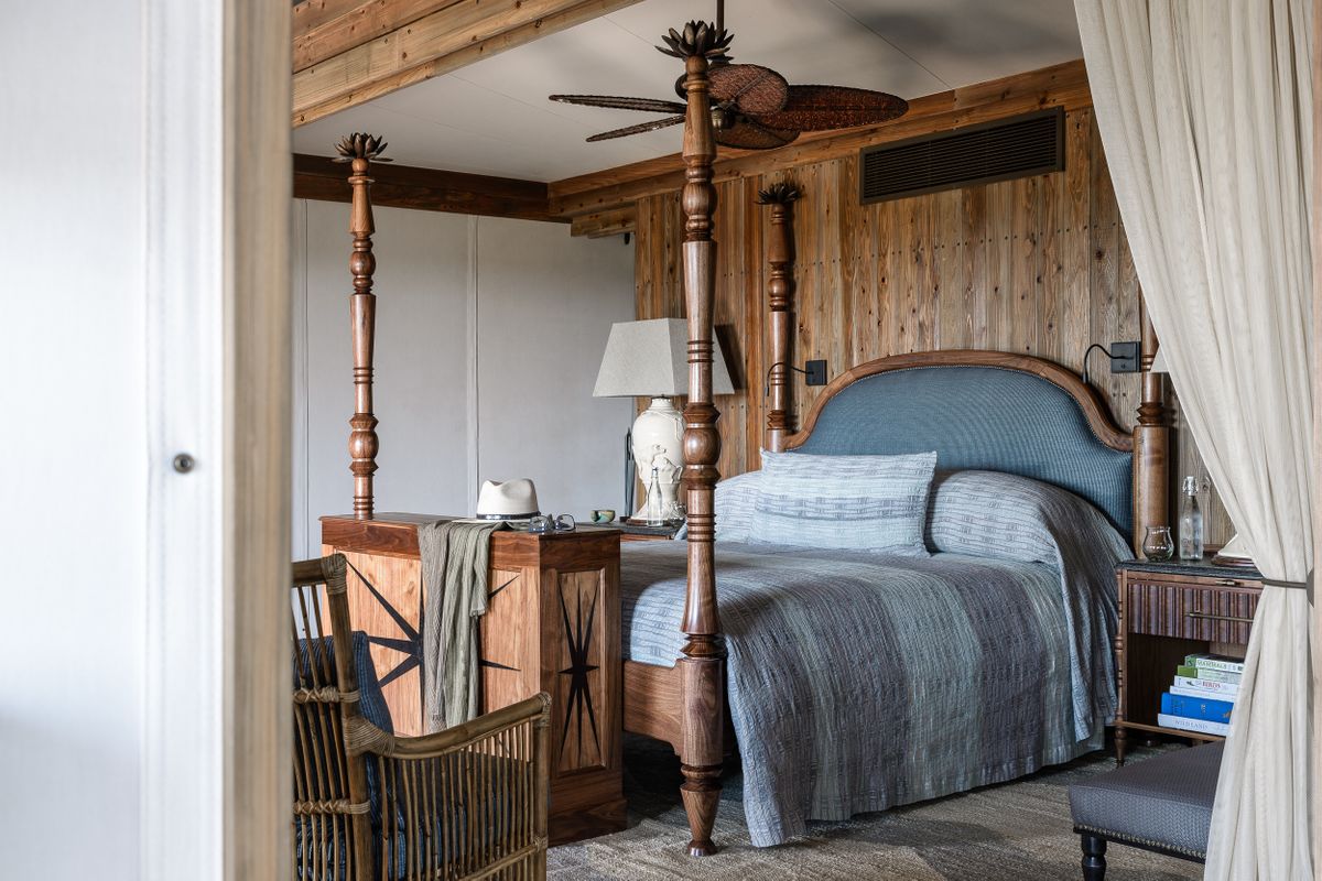 The headboard fabrics in the Papyrus Suite beautifully embody the waters of the Okavango Delta.
